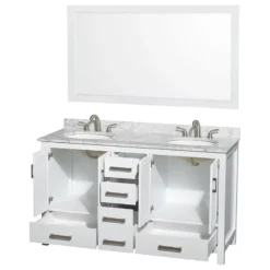 Wyndham Collection Sheffield 60″ White Double Vanity, Carrara Marble Top, Um Rd Sinks, 58″