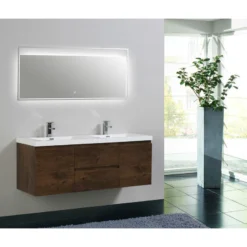 Bathroom Vanity Wholesale INC. MOB 60″ Single Acrylic Sink Wall Mounted Vanity, Rosewood