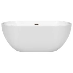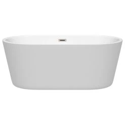 Wyndham Collection Carissa 60″ Freestanding White Bathtub, Brushed Nickel Drain And Overflow Trim