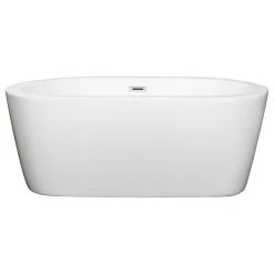 Wyndham Collection Mermaid 60″ Freestanding White Bathtub, Polished Chrome Drain And Overflow Trim
