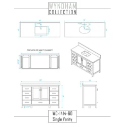 Wyndham Collection Sheffield 60″ Espresso SGL Vanity, Carrara Marble Top, UM Sq Sink, 58″ Mrr