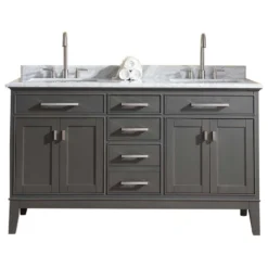 Ari Kitchen & Bath Danny Double Bathroom Vanity Set, Maple Gray, 60″