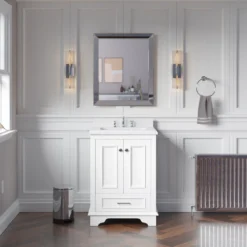 Kitchen Bath Collection Nantucket 24″ Bathroom Vanity, White, Quartz