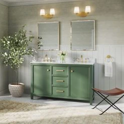 MOD Woodruff Bath Vanity, Double Sink, 54″, Pewter Green, Freestanding