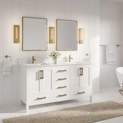 MOD Eleanor Bath Vanity, White, 60″, Double Sink, Freestanding