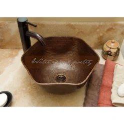 SimplyCopper 14″ Round Copper Vessel Bath Sink, 13″ ORB ClayborneFaucet & Daisy Drain