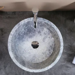 Villohome Natural Stone Tundra Grey Marble Vessel Sink Polished (D)16.5″ (H)6″