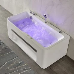 HOMARY 60″ Acrylic Rectangular Whirlpool Water Massage Bathtub, Chromatherapy LED