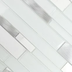 Modern White Glass Metal Mosaic Backsplash Tile, 12″x12″