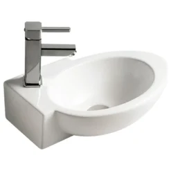 Elite Sinks Elanti Collection Left-Facing Porcelain Wall-Mounted Oval Corner Sink, Right-Fac