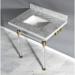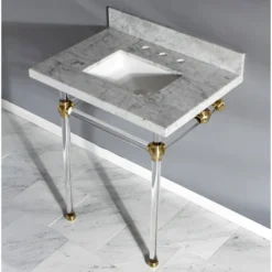 Kingston Brass 30X22 Marble Vanity Top W/Acrylic Console Legs, Carrara Marble/Brushed Brass