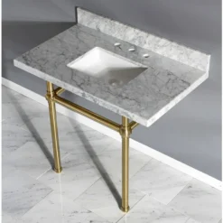 Kingston Brass 36X22 Marble Vanity Top W/Brass Console Legs, Carrara Marble/Brushed Brass