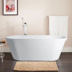 Vanity Art LLC Vanity Art Solid Surface Resin Stone Freestanding Bathtub, Matte White, 65″x29.5″