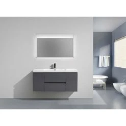 Bathroom Vanity Wholesale INC. MOB 48″ Wall-Mounted Single Bathroom Vanity In High-Gloss Gray