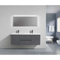 Bathroom Vanity Wholesale INC. MOB 60″ Wall-Mounted Double Bathroom Vanity In High Gloss Gray