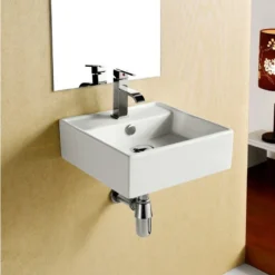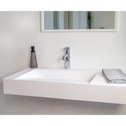 HOMARY 47″ Wall-Mount Double Sink Stone Resin Bathroom Sink With Two Faucet Hole, Gloss