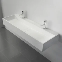 HOMARY 47″ Wall-Mount Double Sink Stone Resin Bathroom Sink With Two Faucet Hole, Matte