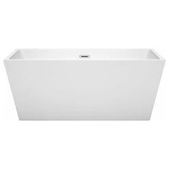 Wyndham Collection Sara 59″ Freestanding White Bathtub, Polished Chrome Drain And Overflow Trim
