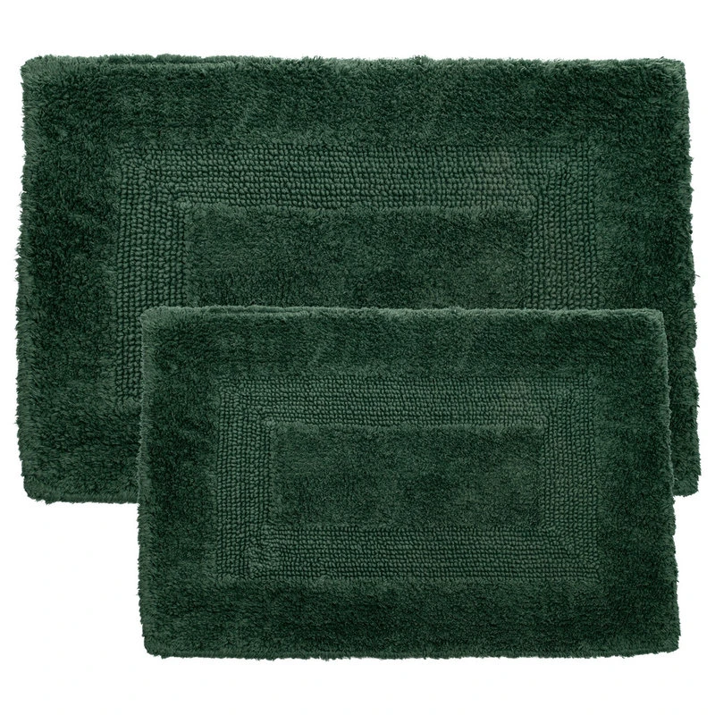 Step out of your tub and into luxury with the 100% Cotton 2 Piece Reversible Rug Set. Super soft, high pile plush and 100% Cotton loops keep your feet comfortable and your bathroom floor dry. Includes one oversized and one standard sized rug.