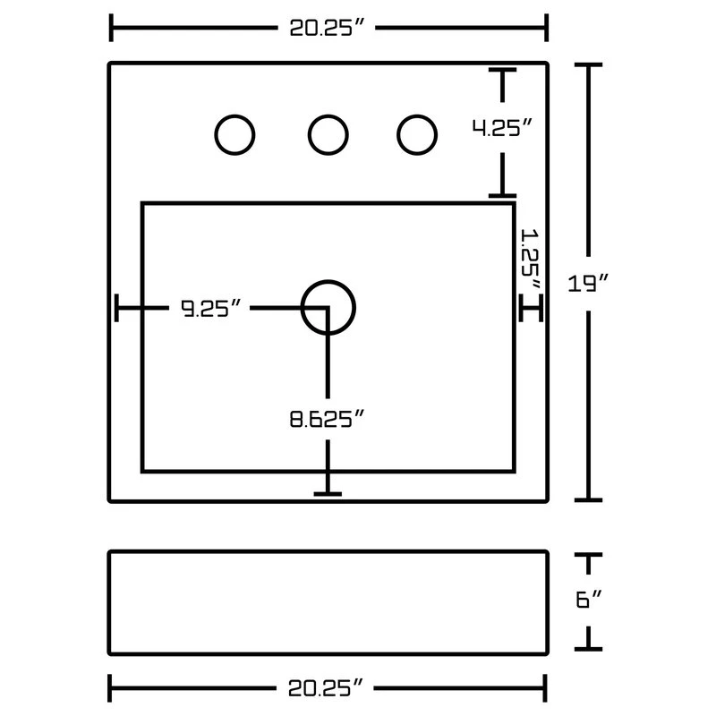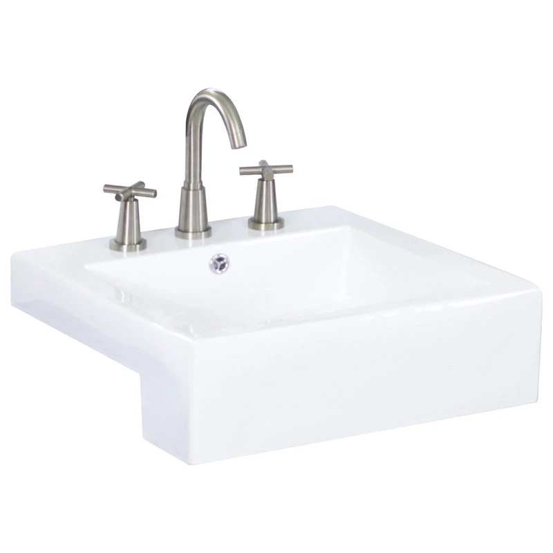 20.25-in. W Semi-Recessed White Bathroom Vessel Sink For 3H8-in. Center Drilling THIS PRODUCT INCLUDE(S): 1x bathroom vessel sink in white color (1579). This bathroom vessel sink belongs to the xena farmhouse series. This bathroom vessel sink features a rectangle shape with a modern style. This product is made for semi-recessed installation. DIY installation instructions are included in the box. This bathroom vessel sink is designed for a 3h8-in. faucet and the faucet drilling location is on the center. Comes with an overflow for safety. This bathroom vessel sink features 1 sink. This bathroom vessel sink is made with ceramic. The primary color of this product is white and it comes with chrome hardware. Smooth non-porous surface; prevents from discoloration and fading. Double fired and glazed for durability and stain resistance. 1.75-in. standard USA-Canada drain opening. 20.25-in. Width (left to right). 19-in. Depth (back to front). 6-in. Height (top to bottom). All dimensions are nominal. This product can usually be shipped out in 1 day. Quality control approved in Canada. Each box on your order is physically opened-up and inspected to make sure only the highest quality product is shipped. We take and store photos of every single quality audit of every single order we ship. You can see them when you track your order on our website.
