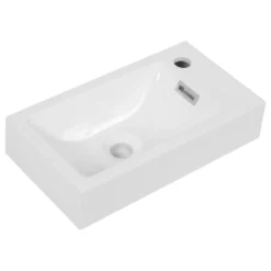 This 18″ Solid Surface Resin Streamline K-1207-18R Vanity Top shows simplicity in a modern bathroom. Its glossy white color maintains its resistance to any scratches or heat. It measures 17.7 in. L x 9.8 in. W and is made from solid surface resin. Solid surface resin is the most durable vanity top material and allows for extended usage. It also features an integrated sink with a pre-drilled 1.4 in. diameter faucet hole. In addition, this 18″ Solid Surface Resin Streamline K-1207-18R Vanity Top has an overflow hole that prevents water from spilling. This solid surface resin vanity top is the best choice for you!