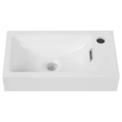 This 18″ Solid Surface Resin Streamline K-1207-18R Vanity Top shows simplicity in a modern bathroom. Its glossy white color maintains its resistance to any scratches or heat. It measures 17.7 in. L x 9.8 in. W and is made from solid surface resin. Solid surface resin is the most durable vanity top material and allows for extended usage. It also features an integrated sink with a pre-drilled 1.4 in. diameter faucet hole. In addition, this 18″ Solid Surface Resin Streamline K-1207-18R Vanity Top has an overflow hole that prevents water from spilling. This solid surface resin vanity top is the best choice for you!