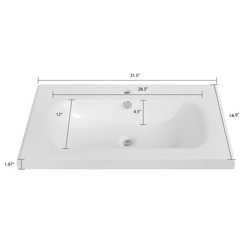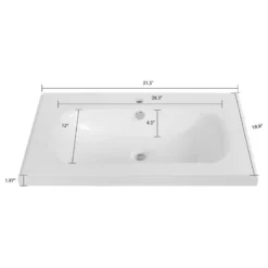 The 32″ Solid Surface Resin Streamline K-1102-32 Vanity Top is a revolution in sizing, fit and thinking. It measures at 31.5 in. L x 18.9 in. W, offering a spacious area to store your favorite bathing equipment. Made from a sturdy solid surface resin material, this luxurious bathroom vanity top is made to withstand stains or any other signs of use. As an additional feature, the sophisticated styled vanity top features a pre-drilled 1.4 in. diameter faucet hole as well as an overflow to prevent spillage. On top of it all, its glossy white color offers a touch of exclusivity. Can you think of anything more convenient, but elegant?