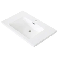 This is the perfect vanity top for the one who demands a timeless, contemporary look for his bathroom. The 32″ Solid Surface Resin Streamline K-1203-32 Vanity Top is crafted from high quality, durable solid surface resin material that is made to last for years to come. Yet, this vanity top does not compromise on appearance. It comes in a white color with a glossy finish that will make your bathroom stand out. The 32″ Solid Surface Resin Streamline K-1203-32 Vanity Top measures at 31.5 in. L x 18.5 in. W, which ensures that you have enough space for your favorite bathroom decorations and bathing necessities. To top it off, this stylish vanity top features a pre-drilled faucet hole with a diameter of 1.4 in.