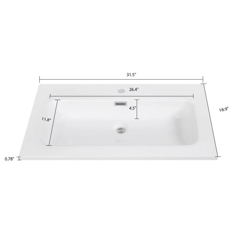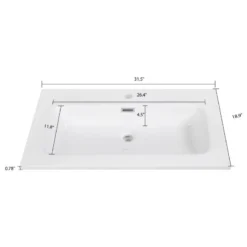 This modern, rectangular, 32″ Solid Surface Resin Streamline K-1801-32 Vanity Top, with its glossy white finish is the dream vanity top for your bathroom. Resistant to dirt, heat, and stains, your vanity top is guaranteed to last. It has a 1.4 in. diameter, pre-drilled faucet hole. This vanity top has an overall size of 31.5 in. L x 18.9 in. W. An overflow hole helps effectively prevent spillage from occuring.