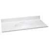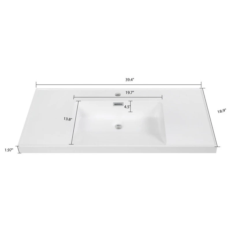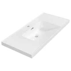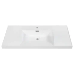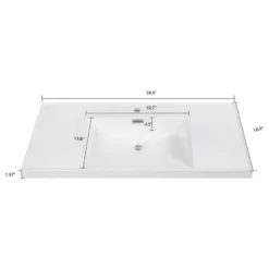This is the perfect vanity top for the one who demands a timeless, contemporary look for his bathroom. The 40″ Solid Surface Resin Streamline K-1802-40 Vanity Top is crafted from high quality, durable solid surface resin material that is made to last for years to come. Yet, this vanity top does not compromise on appearance. It comes in a white color with a glossy finish that will make your bathroom stand out. The 40″ Solid Surface Resin Streamline K-1802-40 Vanity Top measures at 39.4 in. L x 18.9 in. W, which ensures that you have enough space for your favorite bathroom decorations and bathing necessities. To top it off, this stylish vanity top features a pre-drilled faucet hole with a diameter of 1.4 in. We promise you will love the setup.