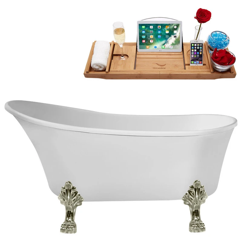 55″ Streamline N346BNK-IN-BNK Clawfoot Tub And Tray With Internal Drain