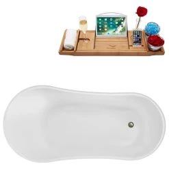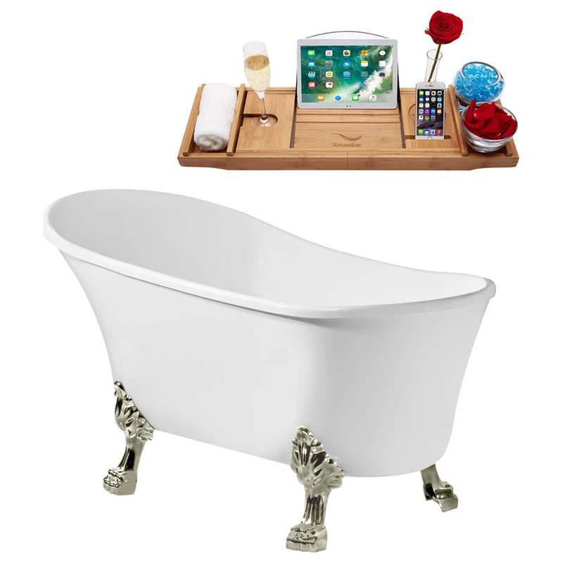 Spoil yourself with this 55″ Streamline N346BNK-IN-BNK Clawfoot Tub and Tray With Internal Drain. Equipped with brushed nickel clawfeet and a brushed nickel internal drain designed to fit 60 gallons of water, this bathtub will bring a personal spa right to your home. The 55″ Streamline N346BNK-IN-BNK Clawfoot Tub and Tray With Internal Drain comes with a glossy white finish that promises to add a touch of uniqueness to your bathroom area, and is specially crafted from durable acrylic material to withstand any signs of use. And saving the best for last – the clawfoot style of this bathtub makes installation incredibly easy.
