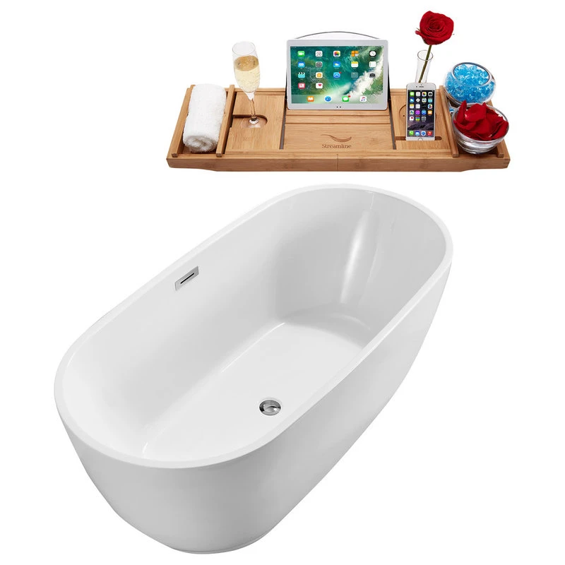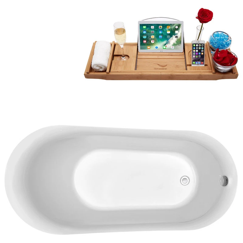 Create your own spa retreat with this beautiful Streamline 59″ deep soaking bathtub. It’s clean sleek design and white glossy finish will add style to any bathroom. It is designed with an internal drain and it can hold up to 58gallons of water. FREE Bamboo Bathtub Caddy Included in Purchase!