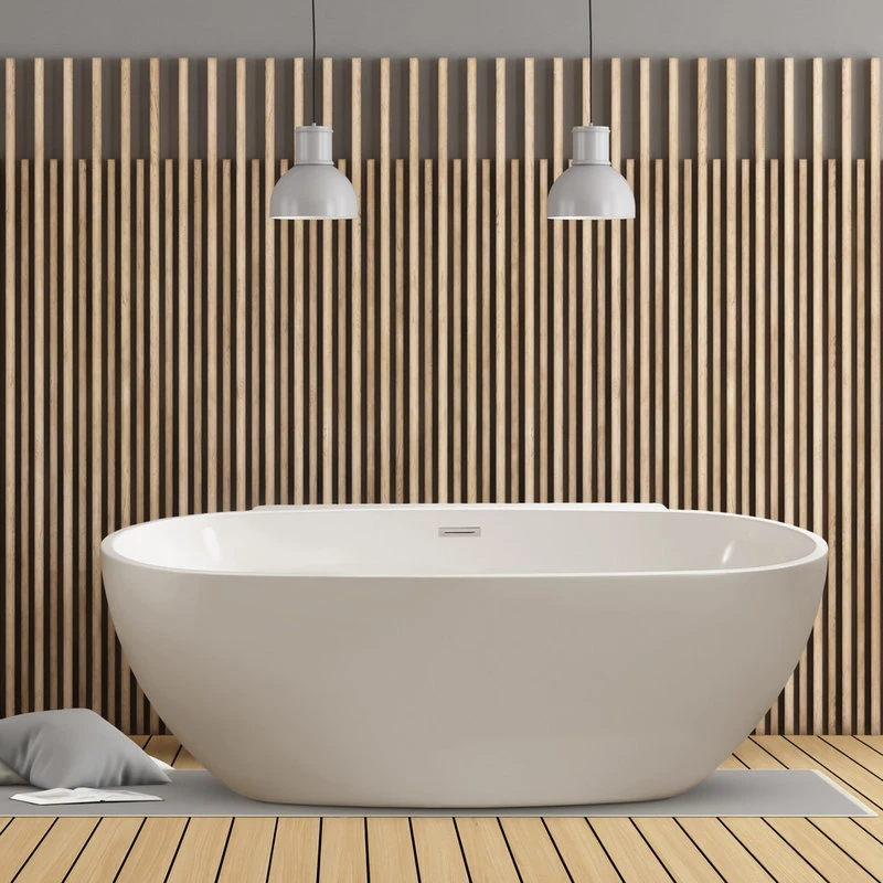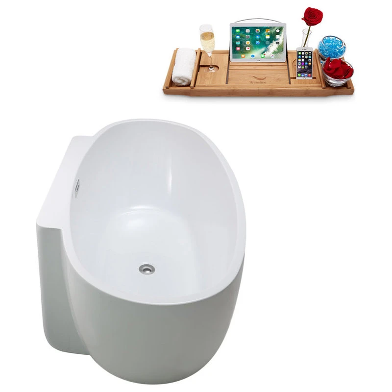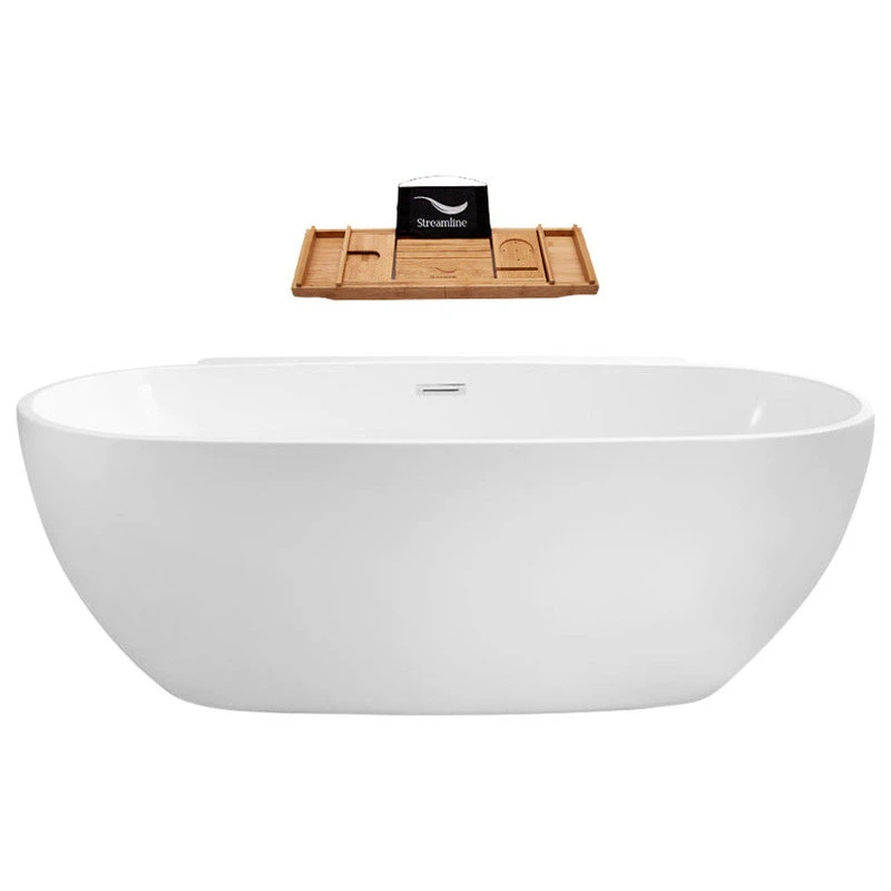 This Streamline 59″ modern deep soaking bathtub is just what your bathroom needs. It was designed with a beautiful white gloss finish and an internal drain to keep its sleek design. This soft curved bathtub can hold up to 58gallons of water. FREE Bamboo Bathtub Caddy Included in Purchase!