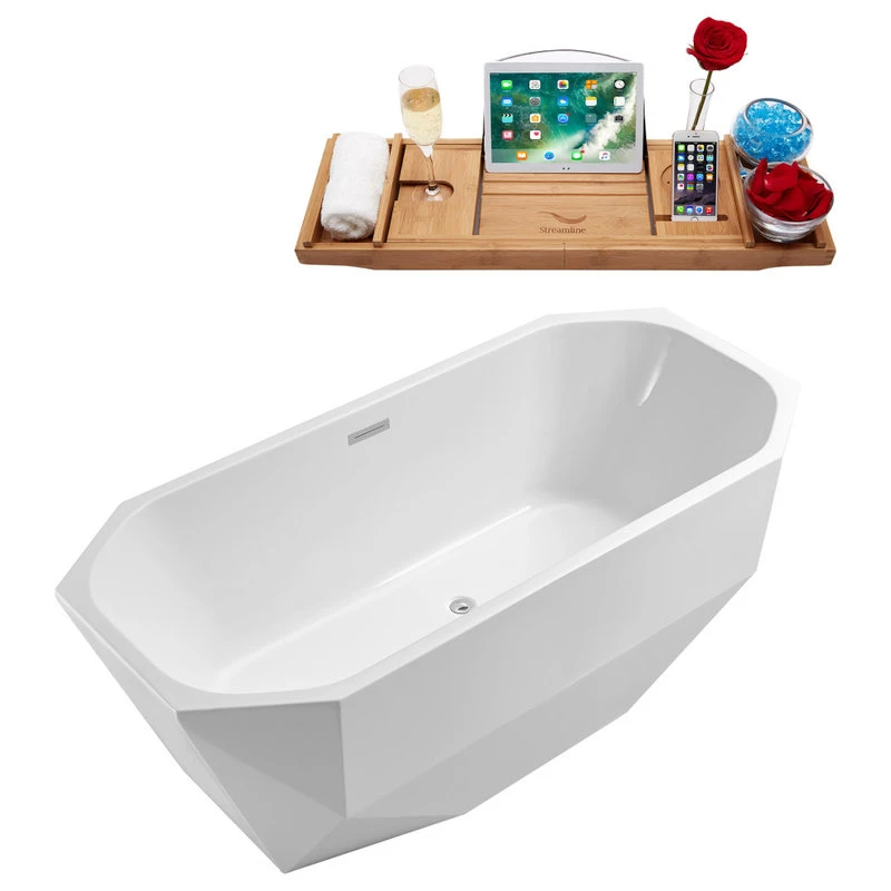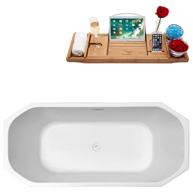 The 67″ Streamline N-622-67FSWH-FM Freestanding Tub and Tray With Internal Drain is designed to maximize your comfort while adding a luxurious touch to your bathrooms ambiance. This bathtub measures at 67 inches and can hold up to 78 gallons of water just right for a relaxing and soothing bathing experience. For maximum longevity, this bathtub is made from durable acrylic. And on top of everything, it comes with a glossy white interior and features a preinstalled internal drain that adds a hint of style and grace to the bathtub.