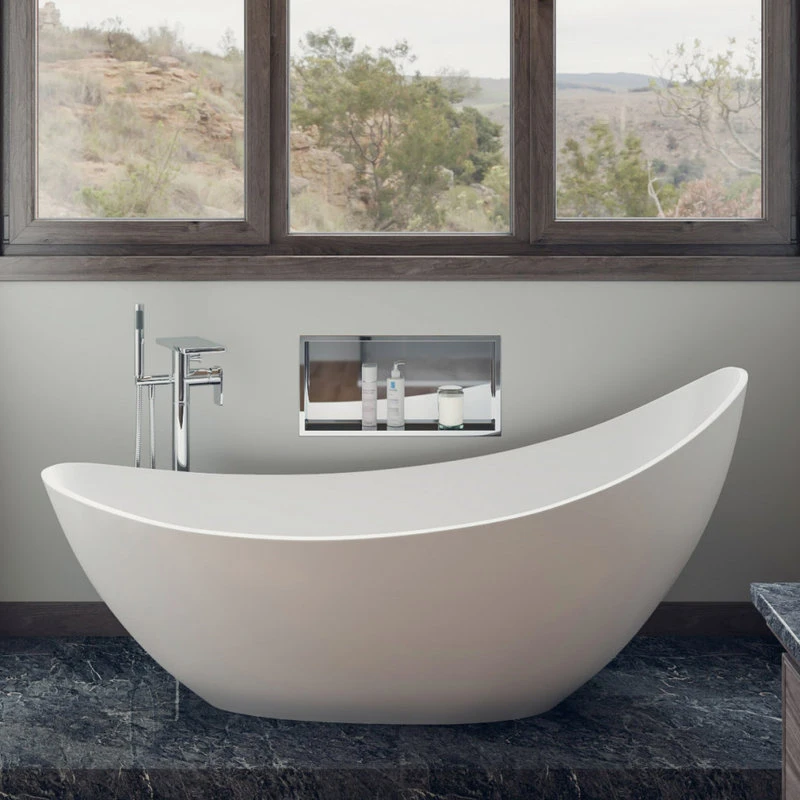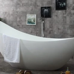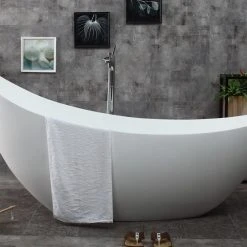Spa inspired bathtubs such as the ALFI brand free standing resin soaking tubs, have become a popular choice for individuals looking to add a sculptural element to their bathroom decor. These tubs do not include features such as jets or bubbles, letting you enjoy a deep quiet soak, just like old times. While relatively new to the market, solid surface resin tubs retain heat well, and come in a variety of shapes and sizes, making them a great choice for easily adding a touch of sophisticated elegance with spa like appeal.
