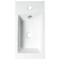 - Includes a standard 1 3/8″ faucet hole on the right side.