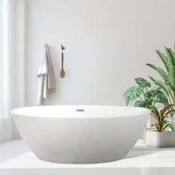 With its soft and seamless oval design, the Jolie by Altair makes a stunning focal point for any bathroom space. This deep, spacious tub is made for long, hot baths and peaceful moments. Note the way the gleaming chrome finishes pop against the pristine white of the acrylic. Crafted with superior care and attention to detail.