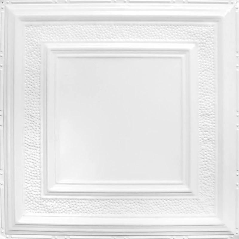 Set of 5 panels. Get creative with the possibilities with pattern #6. This (2 ft. x 2 ft.) authentic tin tile has a 24 inch pattern design with a large concentric square inset and hammered metal border. It is a simple, elegance pattern for contemporary ceilings. Easy installation for a DIY project.