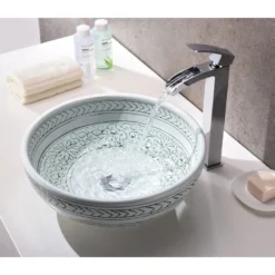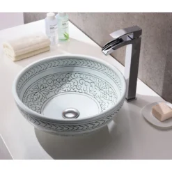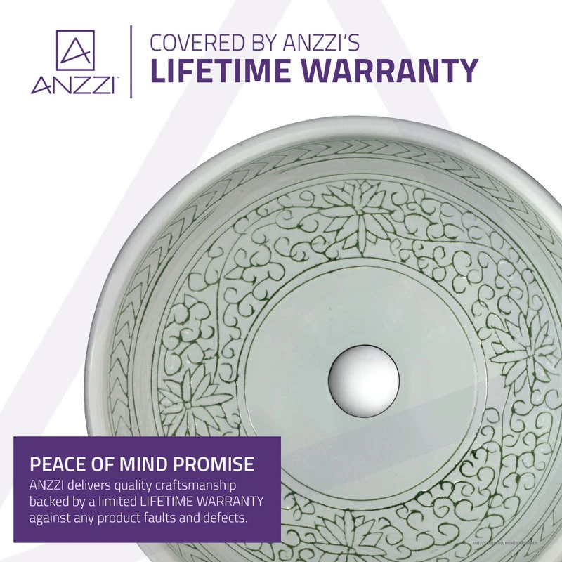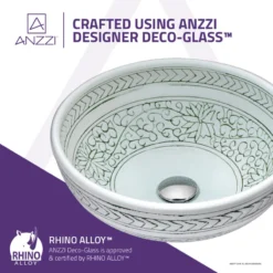 The ANZZI Cadence Series sink is a traditionally crafted round vessel sink adorned in a decor White finish. Each ANZZI vessel sink if formed using RHINO ALLOY certified high tempered Deco-Glass material. The result is an elegantly shaped and captivating vessel centerpiece for any bathroom counter.