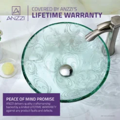 The ANZZI Vieno Series sink is a traditionally crafted round vessel sink adorned in a Crystal Clear Floral Finish. Each ANZZI vessel sink if formed using RHINO ALLOY certified high tempered Deco-Glass material. The result is a dynamically shaped and captivating vessel centerpiece for any bathroom counter.