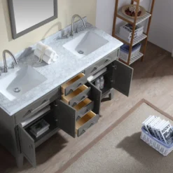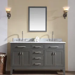 Your bathroom is arguably the most-frequented room in your home. It’s where you prep for the morning, wind down for the night and make several trips in between. With all these comings and goings, it should be as fashionable and functional as the rest of your busy spaces, if not more so. Enter the Danny Double Vanity. This piece offers all the style and utility you could ask for, with its deep gray finish, spacious Carrara marble top and generous amount of storage. Sleek, metal hardware and slightly flared legs are the cherry on top of a good design, giving the Danny the edge it needs to beat out the competition. The Danny pairs beautifully with contemporary, transitional and beach-style bathrooms.