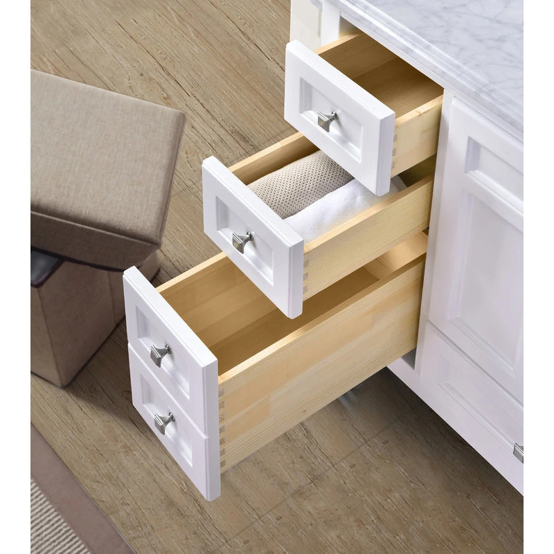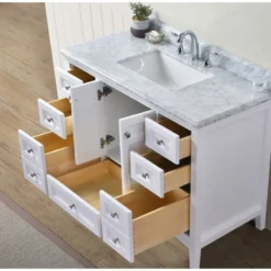 The 42 in. Luz single sink bathroom vanity will be the centerpiece of your bathroom remodel. Constructed of solid hardwood to last a lifetime. Seven solid wood dovetail drawers, with full extension glides to store all your toiletries, coupled with beautiful authentic Italian carrara marble.