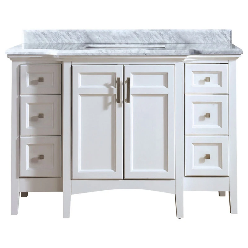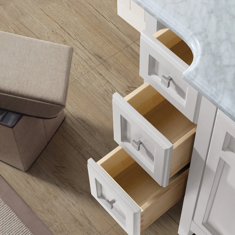 Simple, straightforward design can still be elegant — the proof is in this vanity. The Luz combines clean lines with uncomplicated silhouettes, resulting in a timeless addition to your bathroom. A crisp white finish only heightens the Luz’s appeal, and pairs beautifully with its Italian Carrara marble top and brushed nickle hardware.