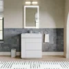 Start your morning and end your day on a stylish note at the MOD Free vanity. With its sleek and streamlined aesthetic, this ultra-chic bathroom piece invigorates your state of mind without the additional splash cold water. Its compact single-sink design is outfitted with ample storage for the essentials, making it the perfect solution to half-baths or smaller washroom layouts.