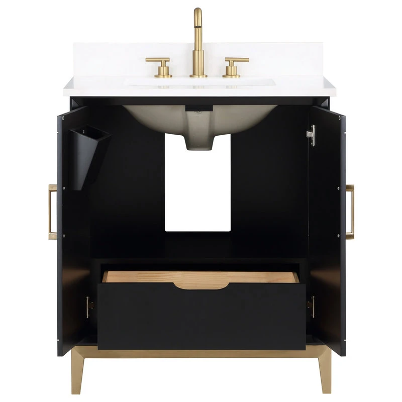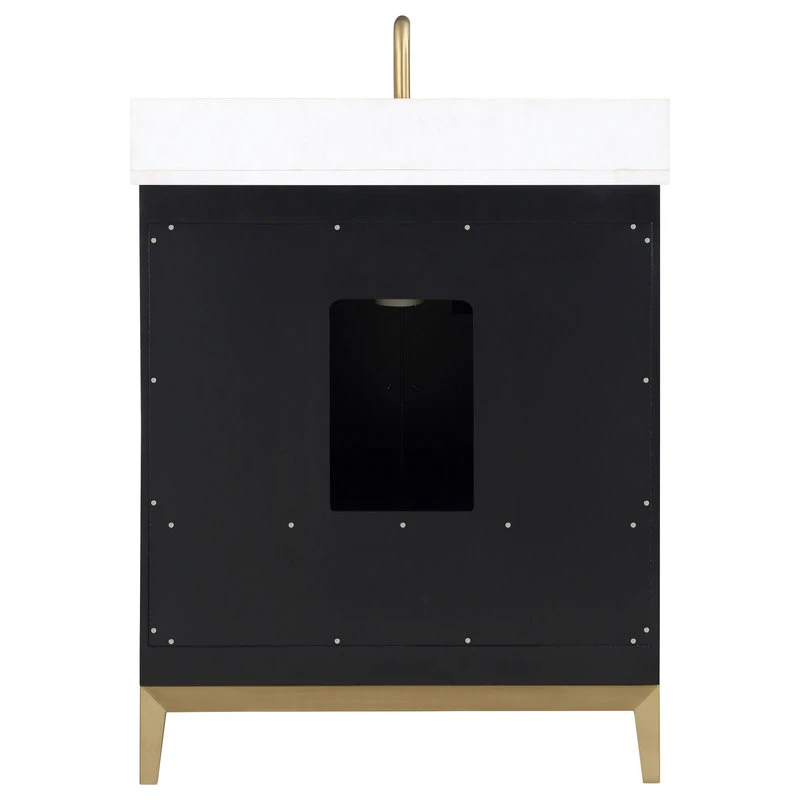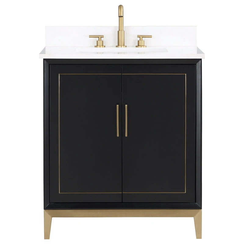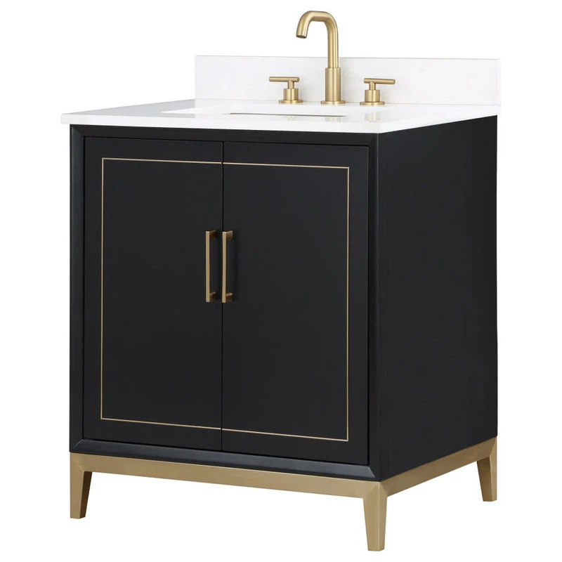 BEMMA Gracie 30″ / 36″ Bathroom Vanity, Black, 30″, Satin Brass, White Quartz Top