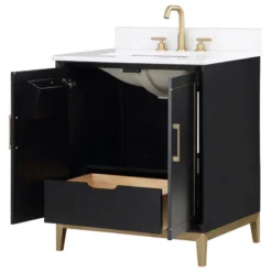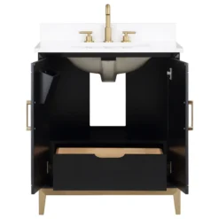 Be the first to review “BEMMA Gracie 30″ / 36″ Bathroom Vanity, Black, 30″, Satin Brass, White Quartz Top” Cancel reply