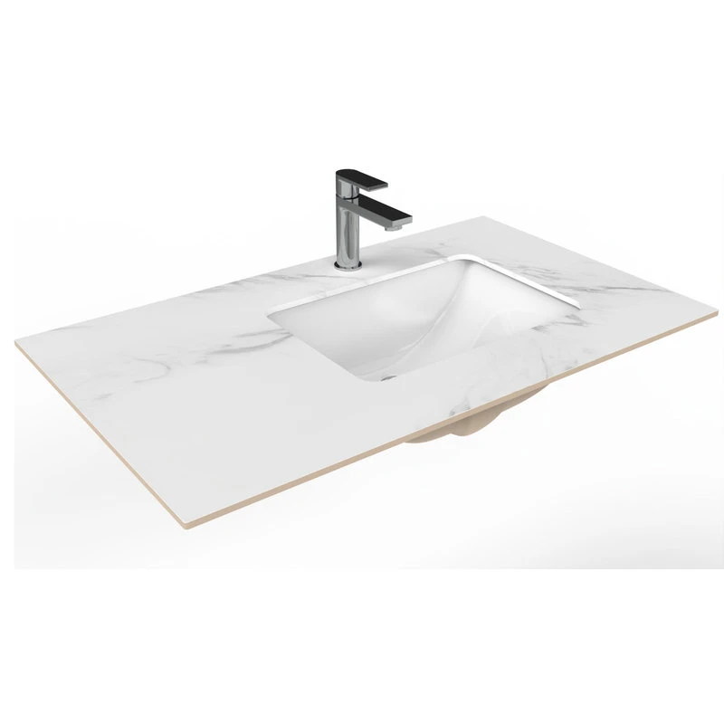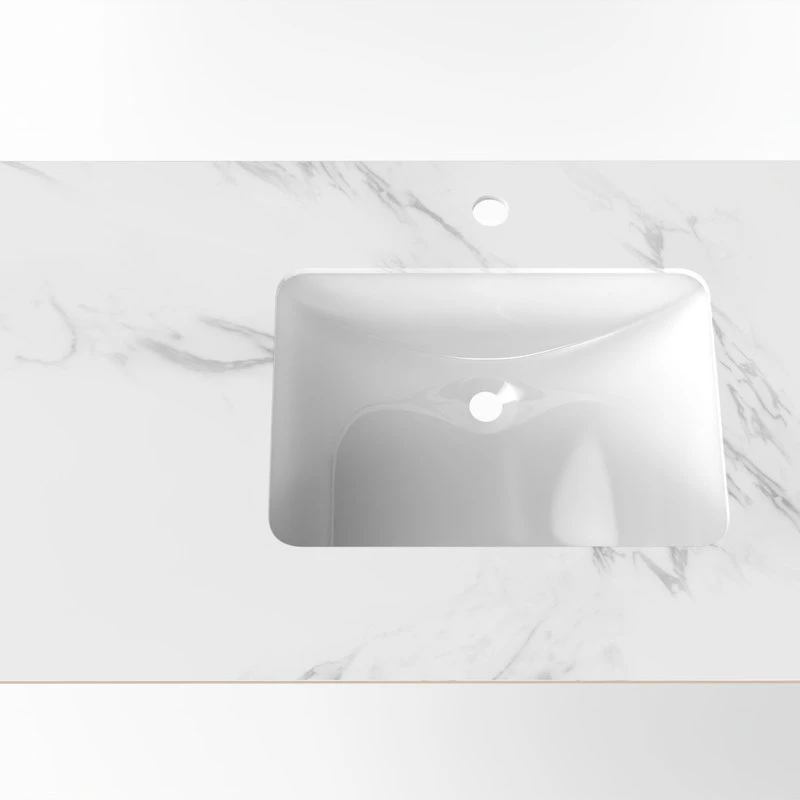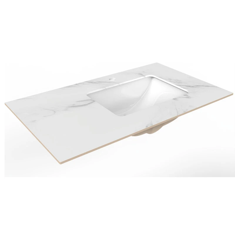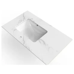 Elegant and versatile, this rectangular vanity top is designed to compliment your favorite vanity bases. Made from durable porcelain, it serves as an eye-catching addition to your bathroom or powder room at home. The combination of a Standard White or Chic Black sink with a marble-like top finish will match any decor.