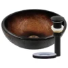 Kraus USA, Inc. Glass Vessel Sink, Bathroom Waterfall Faucet, PU Drain, Mount Ring, Nickel
