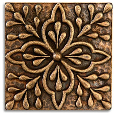 Old world Mediterranean floral design 2×2″ tile in an Aged Brass finish